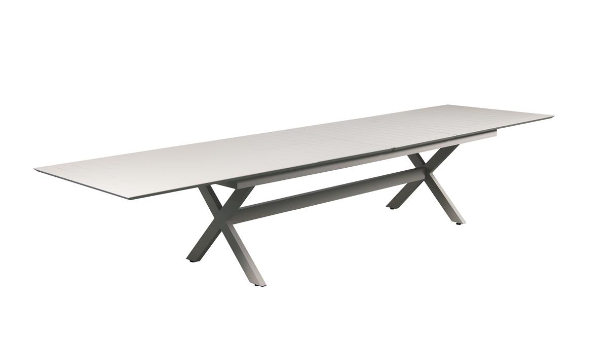 שולחן מאלומיניום איכותי, שולחן הנפתח עד לגודל של 4 מטרים עם שתי פתיחות .מציע עיצוב יוקרתי ורגלי איקס שמוסיפות לאלגנטיות שלו. מגיע במגוון צבעים, השולחן מתאים לארוחות משפחתיות גדולות או מפגשים עם חברים, והוא אידיאלי לשימוש בחוץ. עמיד וקל לפתיחה, הוא מאפשר גמישות מקסימלית בחלל שלכם!