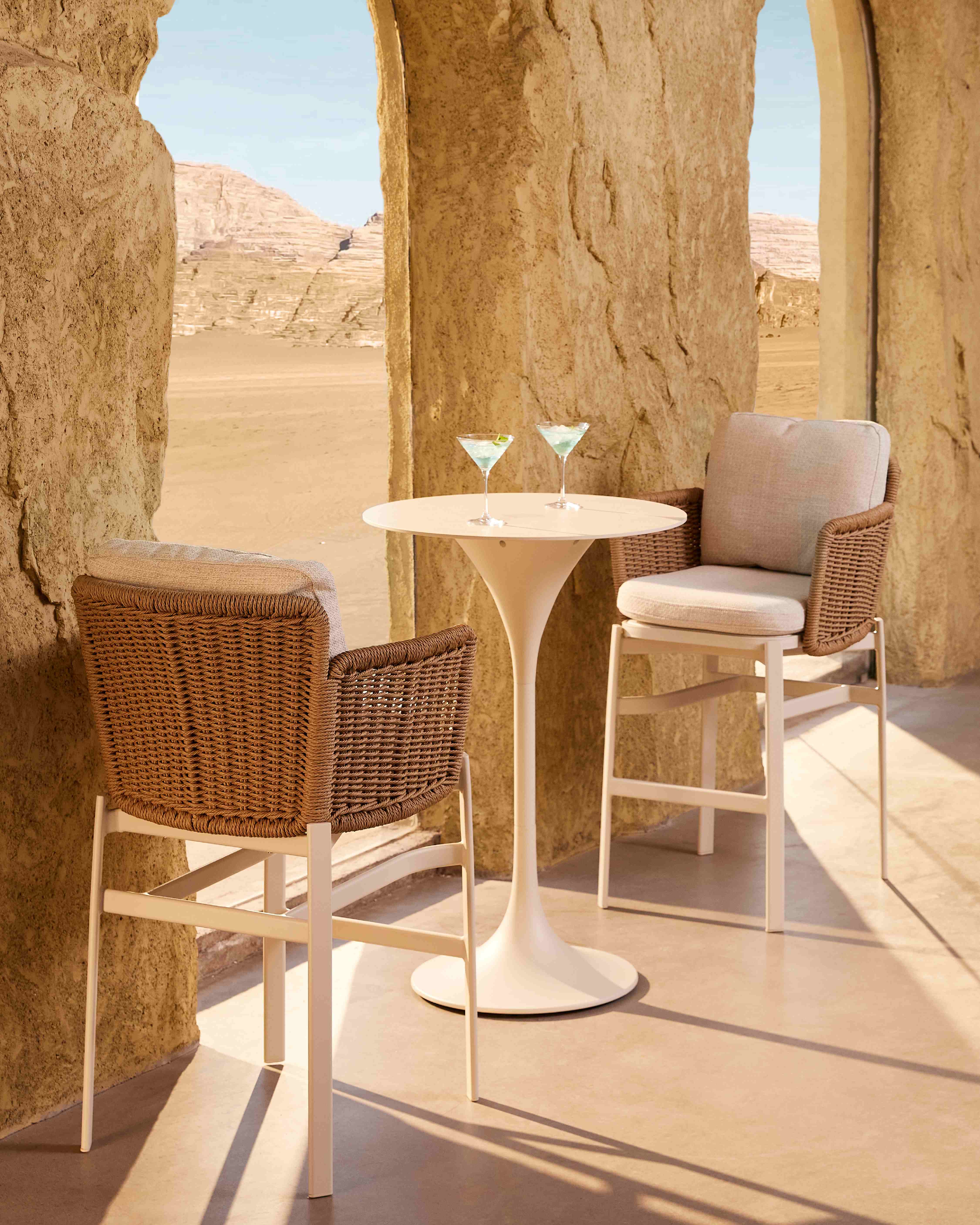 שולחן בר עגול בעיצוב מינימליסטי עם בסיס יצוק אחד ופלטת שיש,מעניק יציבות מרבית ומראה זריז ומסוגנן. הגוון הבהיר שלו מעניק תחושת רעננות ומאפשר שילוב מושלם עם כל סגנון עיצוב. קל לניקוי, עמיד לשמש ולחות – פתרון אידיאלי לחללי חוץ.