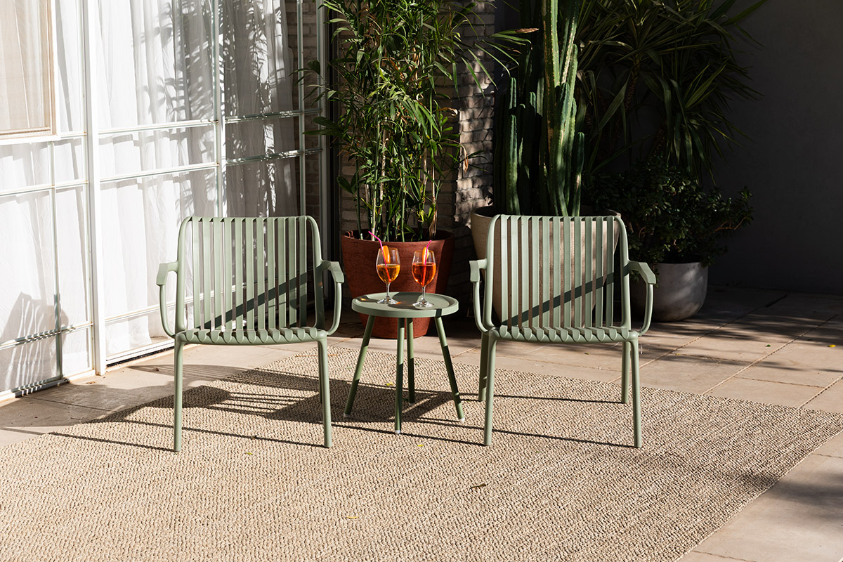 עשוי פוליפרופילן עמיד בפני מזג אוויר – מושלם למרפסת, גינה או פינת ישיבה חיצונית. עיצוב מודרני ונקי שמשתלב נהדר עם כל סביבה טבעית.